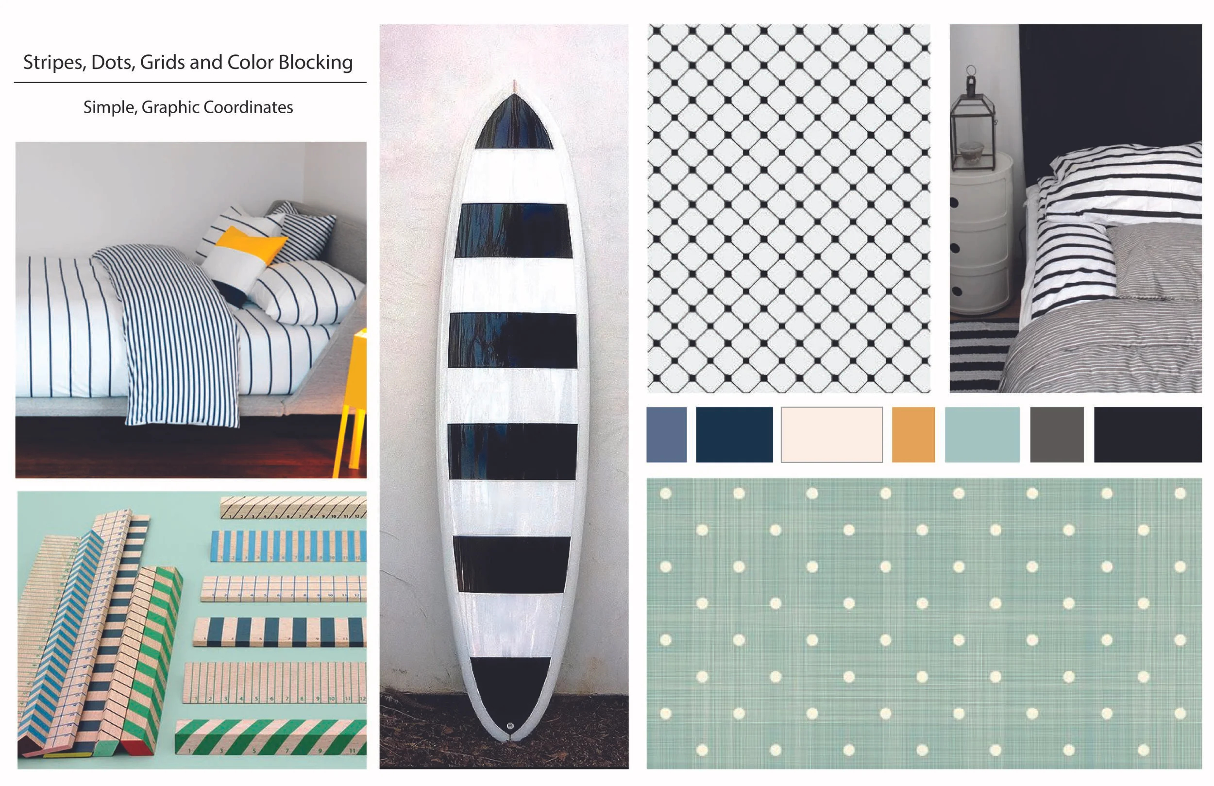 This mood board focused on simple, low risk patterns that are easy to mix and match.